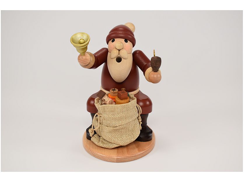 Dregeno - Räuchermann Weihnachtsmann sitzend mit Glocke und Geschenkesack