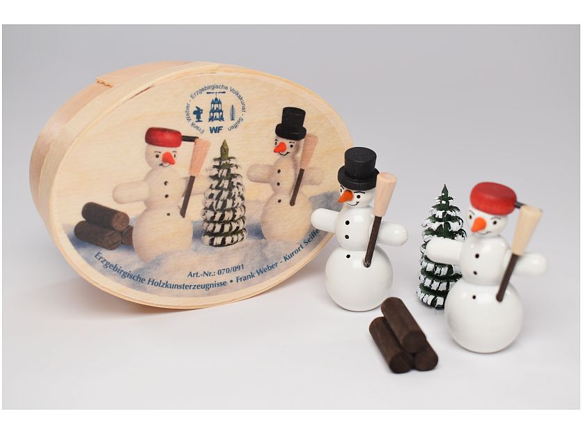 Dregeno - Spandose mit 2 Schneemännern, Bäumchen und Holzstoß
