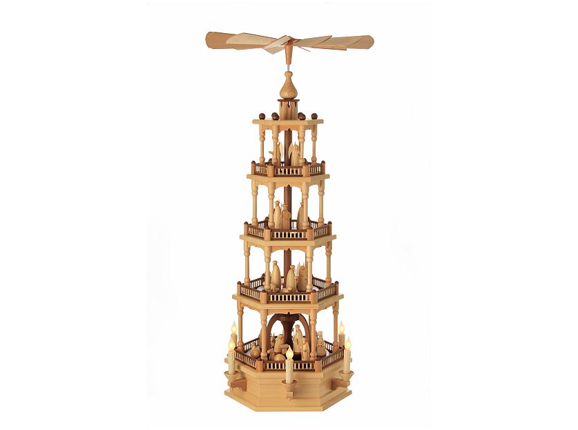 Schalling - Pyramide natur 4-stöckig mit Christi Geburt elektrisch & indirekt beleuchtet